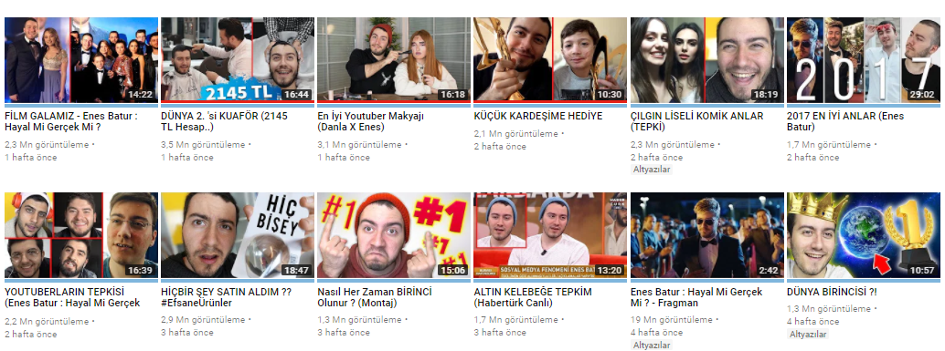 Yukarıda gördüğünüz kanal ise bir çoğumuzun tanıdığı Youtube fenomeni Enes Batur Sungurtekin. Bu kanal ise videolarını yüzünü göstererek hazırlıyor. Az önceki logolu kanala istinaden farklı olarak her videonun “thumbnail(küçük resim)”’inde yüzünü göstermeye önem vermiş. Örnek verecek olursak insanların çoğu Enes Batur’un logosunu bilmezken, yüzünü ve ismini aklına kazımış durumda.